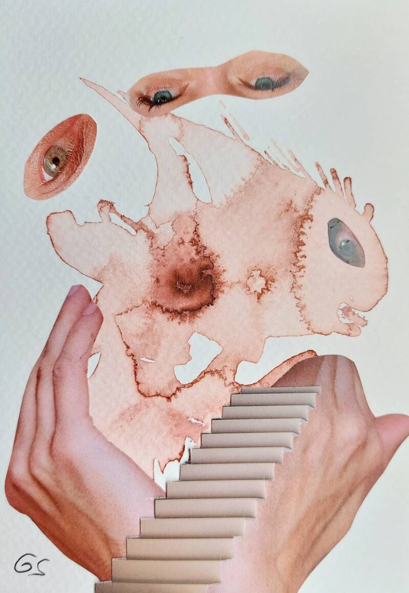 Since 2025 the work is developping in aquarel collages with a strong surrealistic character.